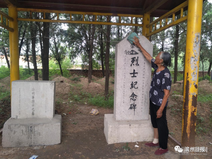 2022年9月30日,第九个烈士纪念日,惠民县石庙镇归化村的一位耄耋老人在家人的搀扶下艰难地一步步迈上台阶,拿起抹布仔细擦拭烈士纪念碑上的灰尘。老人叫赵银亭,今年已经93岁,就是她和老伴管宝志30年如一日,守护在归化烈士陵园,每年清明,她都要为烈士墓献上一束鲜花、添上一抔新土,30年从未间断。